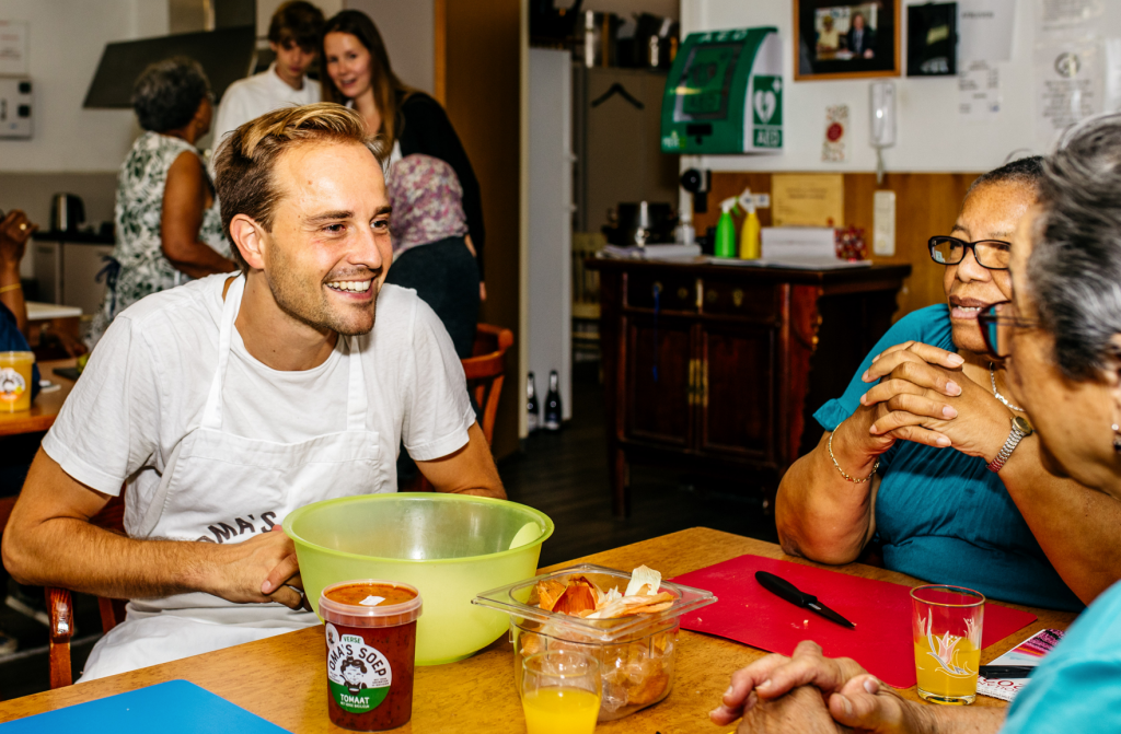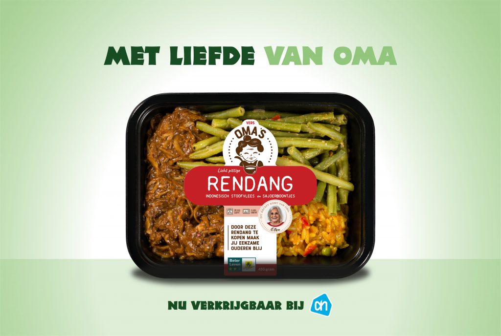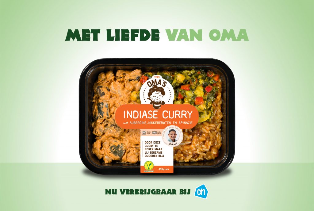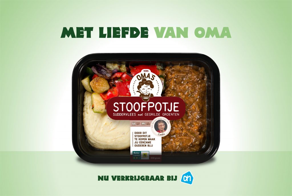 Onze nieuwe maaltijden zijn het beste recept tegen eenzaamheid! Door de verkoop van onze heerlijke nieuwe exotische Oma’s Maaltijden bij de Albert Heijn kunnen wij nog meer ouderen laten schateren van het lachen!